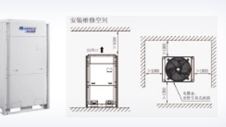 3.室外機是散熱設(shè)備,務(wù)必確保安裝位置通風(fēng)流暢。以免影響使用效果。要求出風(fēng)無障礙,如周圍空間為開放空間,機組頂部距頂墻1500mm以上;如非開放空間,或距頂墻不足1500mm,需接回風(fēng)管。
