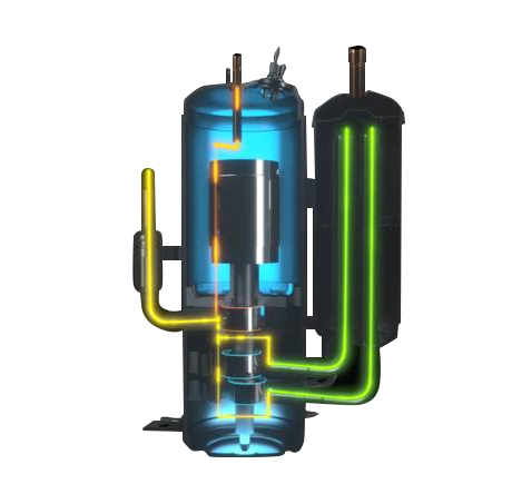 三缸雙級(jí)變?nèi)莘e比壓縮機(jī)可實(shí)現(xiàn)兩種不同容積比的雙級(jí)壓縮,可降低單個(gè)氣缸的壓縮比,減小了泄漏量,提高了壓縮機(jī)的容積效率,與單級(jí)壓縮系統(tǒng)相比,雙級(jí)增焓壓縮系統(tǒng)具有能力高、能效高和可靠性高的優(yōu)勢(shì),使用在家用熱泵空調(diào)、多聯(lián)式熱泵空調(diào)、戶用冷水熱泵機(jī)組等多種類型的熱泵產(chǎn)品中。