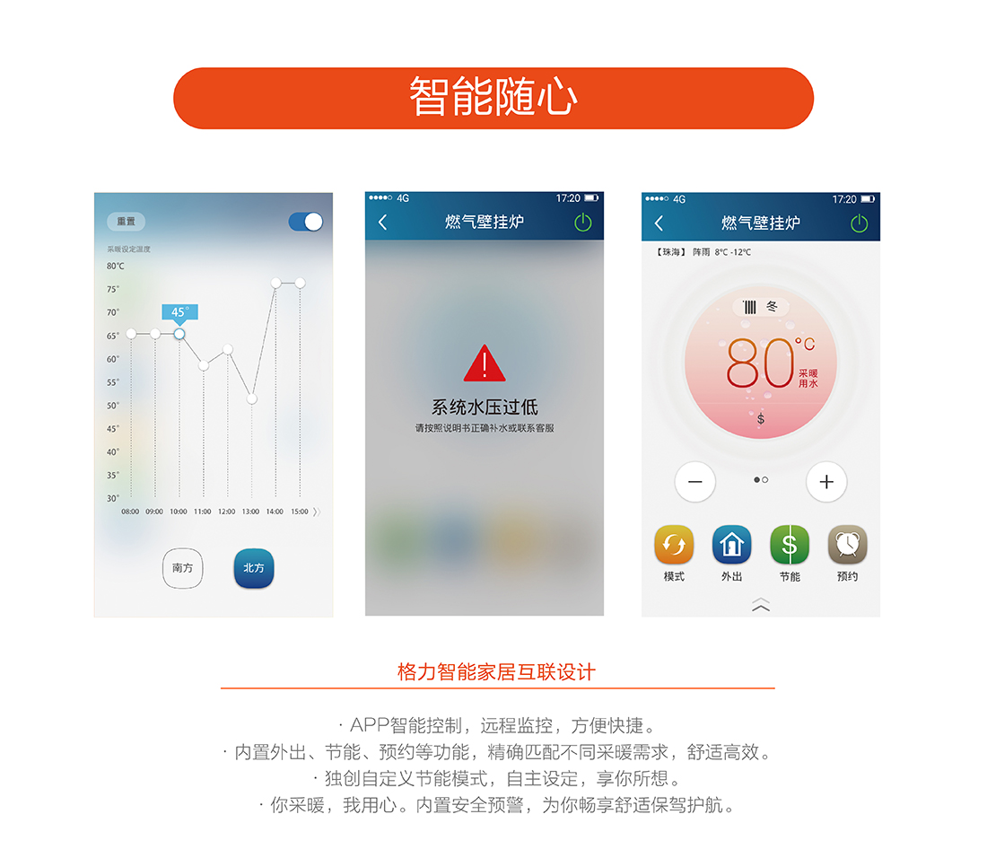 全預混燃燒結合雙寬域功率調節(jié),節(jié)能恒溫,溫差在±0.5℃之間,保證熱水四季恒溫快速出熱水,減少水流浪費,生活水溫度35-60℃,采暖水溫30-80℃