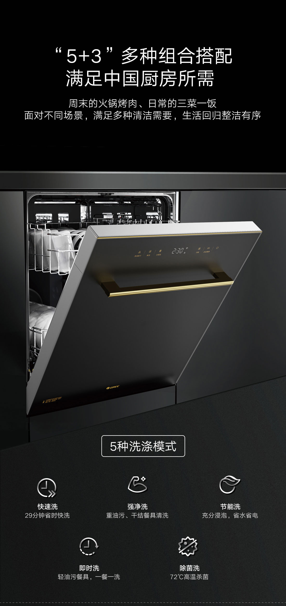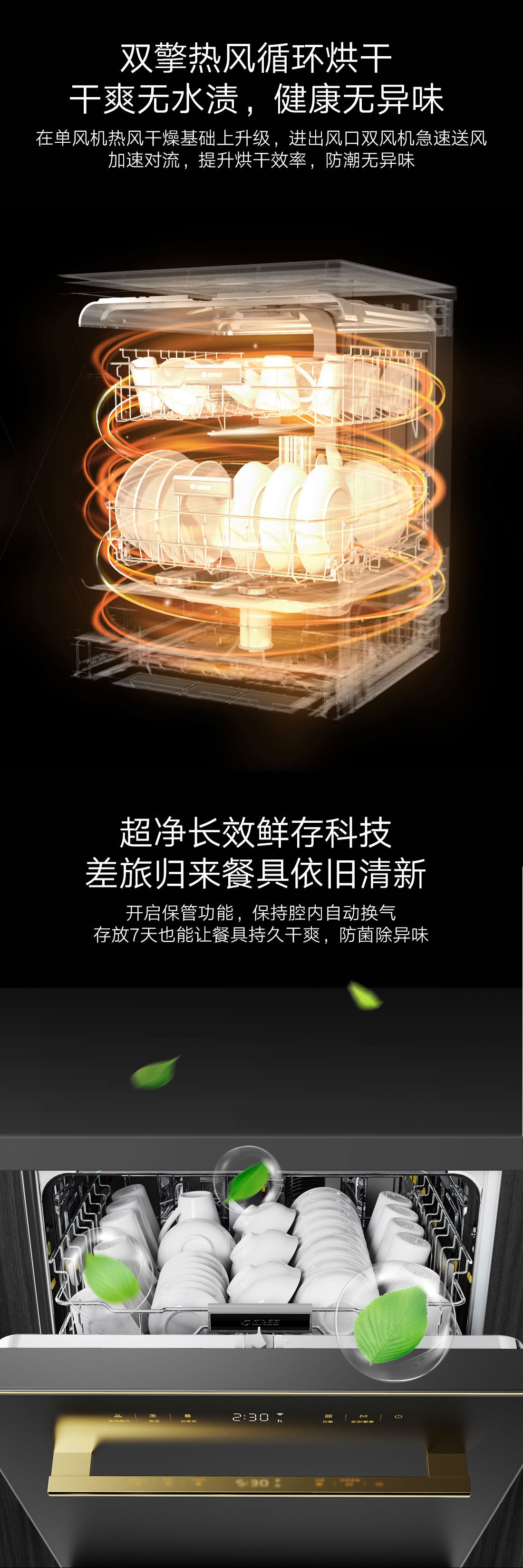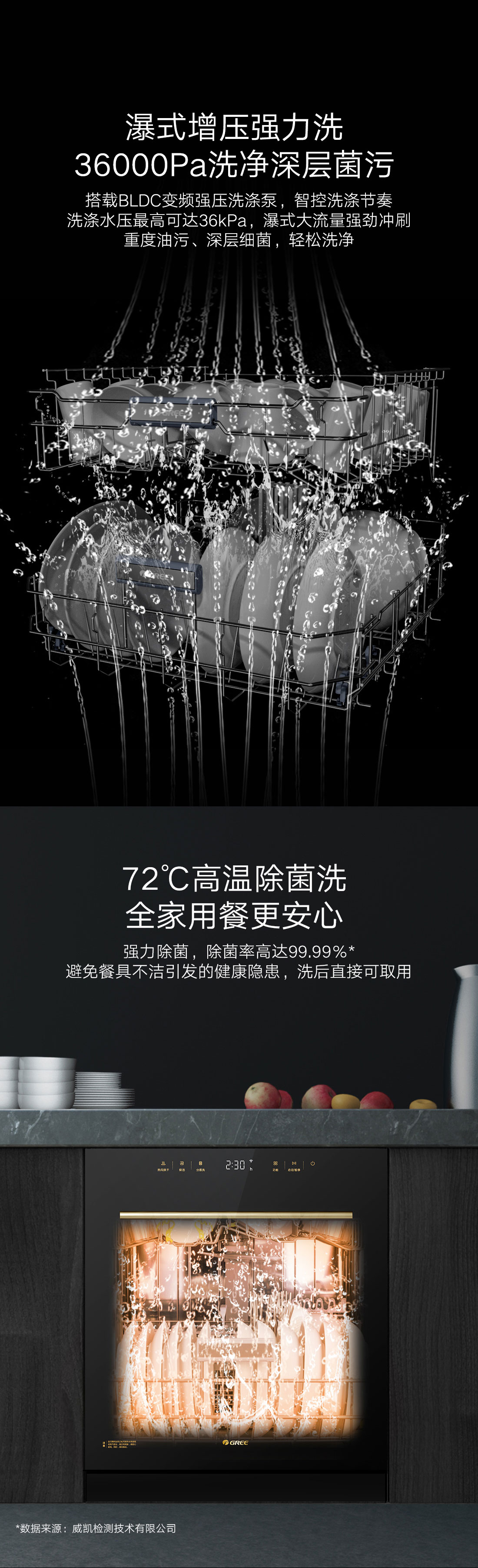 搭載瀑式增壓強洗科技,36KPa洗凈深層菌污,除菌率達99.99%;洗烘除存一體,存放7天也干爽