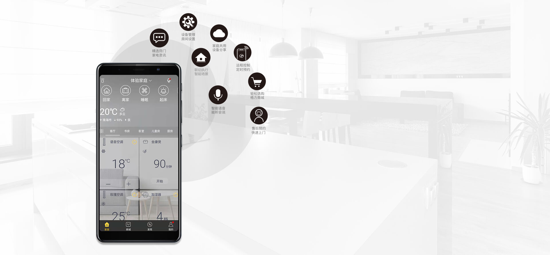 遠(yuǎn)程控制,語音控制,遙控器控制,定時開關(guān).搭配格力智能家電,定制專屬場景聯(lián)動
