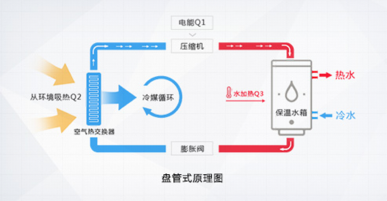 格力空氣能熱水器,傳承空調(diào)核心科技,以消耗一部分電能為補償,通過熱力循環(huán),從周圍環(huán)境的低品位能源(空氣源)取得熱量,通過壓縮機將其輸送至冷凝器,釋放給水箱內(nèi)的水將其加熱。它的工作原理與空調(diào)制熱時的原理相類似,只是空調(diào)是 從自然環(huán)境中吸取熱量,供給室內(nèi)空氣,而空氣能熱水器是以這部分熱量加熱生活熱水,其能效比是電熱水器的4倍,是燃氣熱水器的5倍,是太陽能熱水器的近2倍,是一種新型的高效、節(jié)能、環(huán)保的熱水器產(chǎn)品。一度電的付出,4倍熱量的收獲!